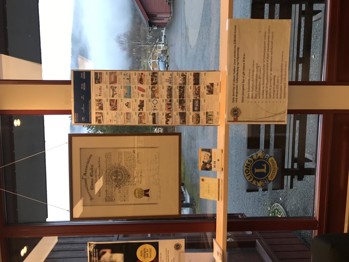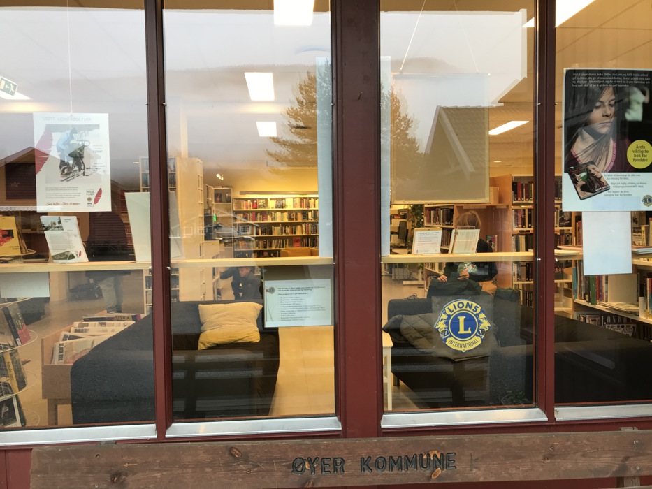 Vi har i dag montert en liten utstilling, dvs. en presentasjon av Lionsklubben vår i det store vinduet på biblioteket i Øyer. Gjennom hele frivilligåret har forskjellige lag og foreninger i kommunen hatt anledning til én måneds presentasjon på denne måten. Og november er altså reservert for oss.