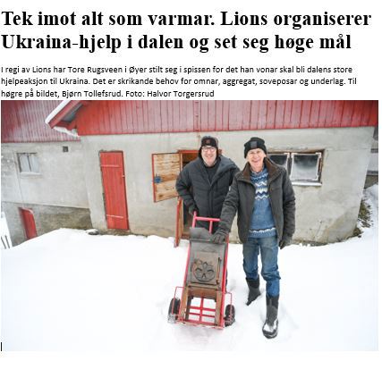 I forbindelse med innsamlingen til Ukraina som f.eks. ovner og aggregater, propanapparater og soveposer, dvs. det som kan gi varme til et krigsherja folk, er det opprettet kontaktpersoner i en del kommuner, samt innsamlingsplasser.