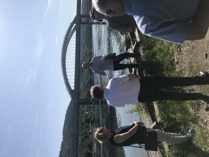 Etterpå beveget vi oss ned til strandkanten, hvor vi fikk et imponerende skue. Bane NOR er snart ferdige med det nyeste tilskudd av bruer over sundet. I oktober åpner de Minnevika jernbanebru som er en del av dobbeltspor prosjektet på Dovrebanen. Øyværingen Håvard Tarjei Kummen, en av mange ingeniører på dette arbeidet, fortalte oss om prosjektet og brua.