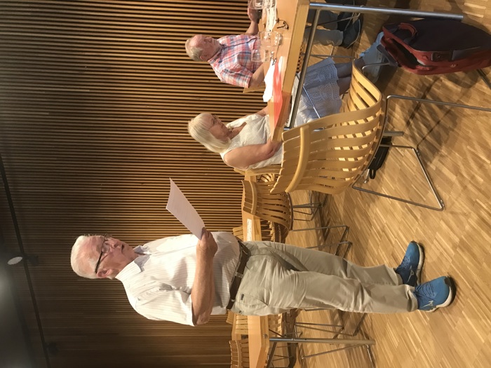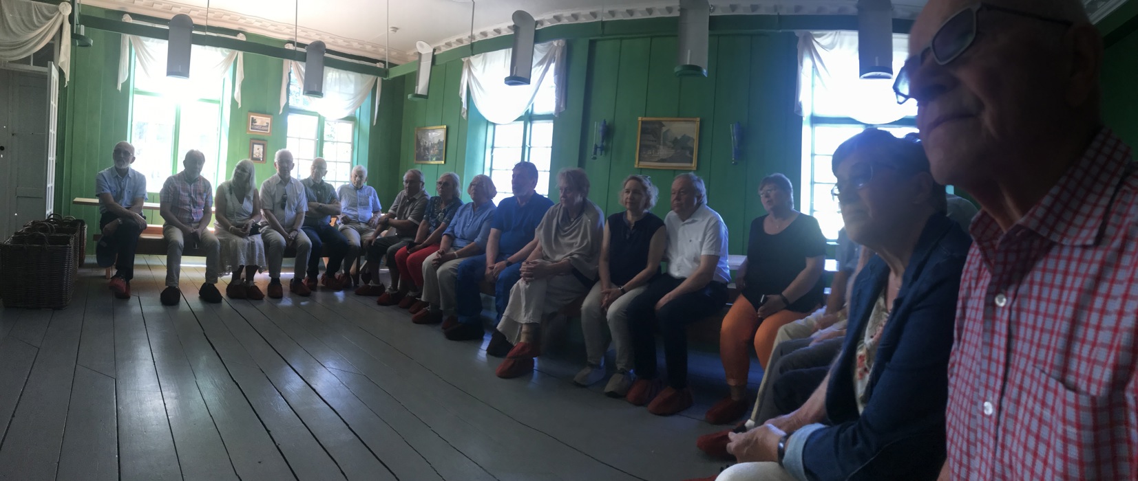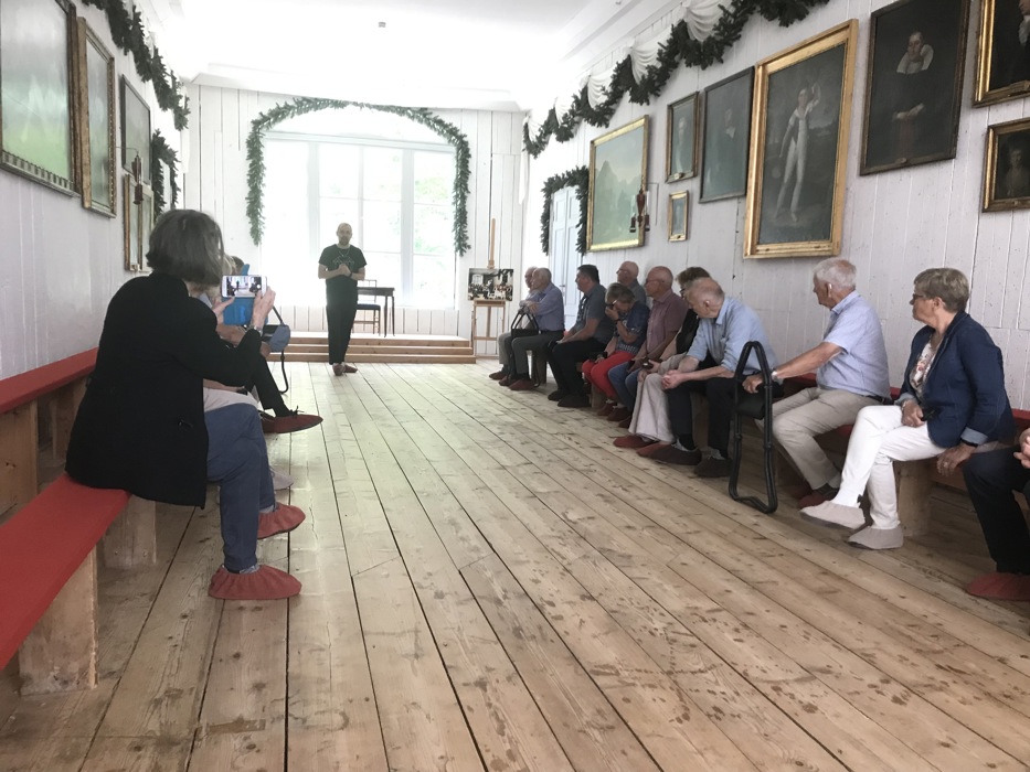 Så var vi klare for omvisning i Eidsvollsbygningen. Omviseren vår var klar i stemmen, kunnskapsrik og hadde en god plan for gjennomføring og vandring rundt i noen av rommene i bygningen. Rikssalen, hvor de 112 utsendingene satt i seks uker for å skrive grunnloven, er jo det mest kjente rommet, og her viste omviseren bl.a. en kopi av grunnloven. Der fant vi «vår» eidsvollsmann, Anders Lysgård, som var født på Jevne i Øyer. Mange av oss tok et bilde av hans underskrift og stempel. I kjelleren og på kjøkkenet ble det laget mat til rundt 150 personer to ganger hver dag. Ingen av oss var i tvil om kjøkkenet måtte ha vært en av de hardeste arbeidsplassene i Eidsvollsbygningen de seks ukene en brukte på å skrive Norges grunnlov.