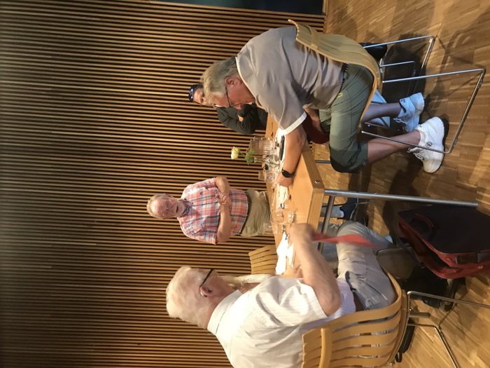 Første stopp var ved Minnesundbruene der Mjøssamlingene, som er en del av Mjøsmuseet, holder til. Vi ble møtt av Lions Eidsvoll med Ole Martin Røsrud i spissen som hadde kaffen og bagetter klar for sultne øyværinger. De hadde til og med klart å få direktøren for Mjøsmuseet, Arne Julsrud Berg, til å stille opp for å gi oss en orientering om hvor viktig Minnesund har vært som trafikknutepunkt opp gjennom historien. Mjøsa var så klart den beste ferdselsåren mellom Minnesund og Lillehammer før det ble jernbane og skikkelige veger nordover. På spørsmål om vi kunne tenke oss hva som var de viktigste varene som kom sørover fra Gudbrandsdalen, var det ikke brennevin(!) som noen foreslo, men smør kinnet på garder og setrer i bygdene våre. Og tømmer ble selvsagt også fløtet nedover i store mengder. Det var ikke bare den kjente Skibladner som gikk i trafikk på Mjøsa, for i 1888 var det faktisk hele 11 dampskip på Mjøsa. Etter at jernbanen kom til Eidsvoll i 1854, ble det mulig å reise fra Oslo til Ringebu på ett døgn. Mjøsmuseet (som også hadde øyværingen Magne Rugsveen som direktør noen år) har nå et stort prosjekt med å kartlegge hva som skjuler seg på bunnen av Mjøsa.