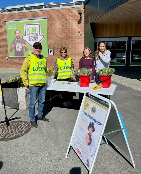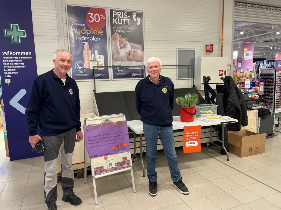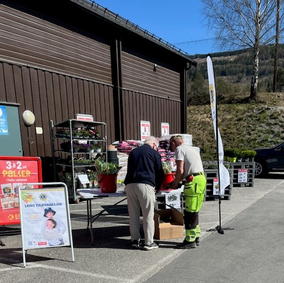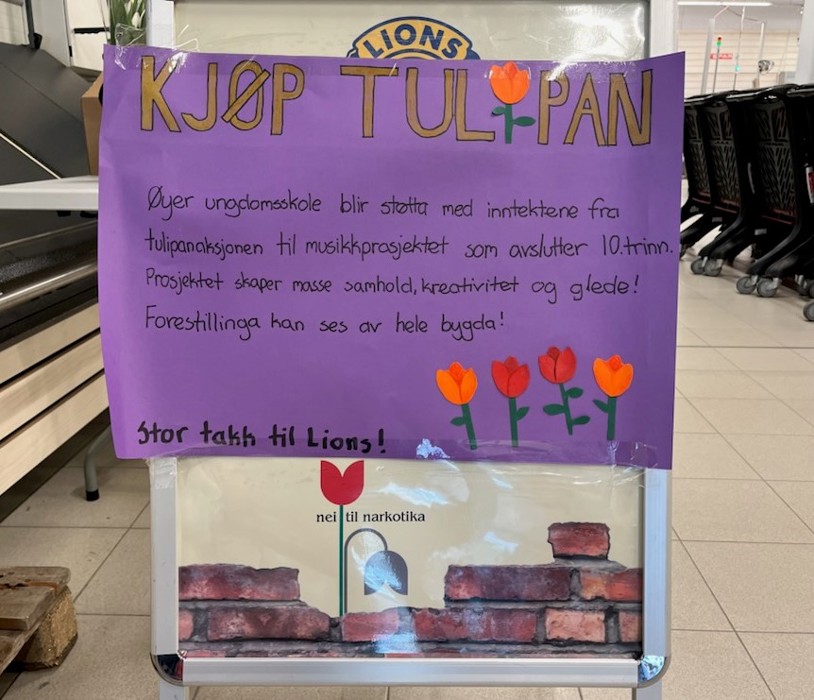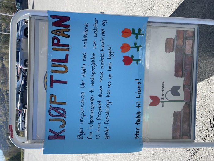 Lionskubben tjuvstarta årets tulipanaksjon med godt salg til bedrifter i kommunen allerede før påske. Men nå i helga har alle andre Øyværinger og tilreisende hatt mulighet for å kjøpe tulipaner fra oss og dermed bidra til holdningsskapende arbeid for barn og ungdom. I år er det 10.klasse ved Ungdomsskolen som får støtte til musikk- og teateroppsetningen som markerer avslutningen av 10 års skolegang. I tillegg til lionsmedlemmene fikk vi hjelp av noen 10. klassinger også til å selge, og på et av bildene ser vi to av dem; Rabija og Mayla. Tusen takk for hjelpa! Noen få buketter ble usolgt, men de håper vi Bakketun bosenter setter pris på å få.