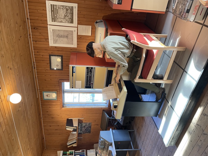Etter en meget interessant runde i de tre etasjene på museet, fikk vi under kaffe og wienerbrød-pausen en orientering om dagens virksomhet på Jørstadmoen som nå er hovedbasen for Cyberforsvaret. Besøket ble avsluttet med en spasertur inne i selve leiren hvor vi bl.a. fikk se at noen brakker tyskerene satte opp fortsatt er i bruk (riktignok modernisert og pusset opp både utvendig og innvendig for dagens bruk).